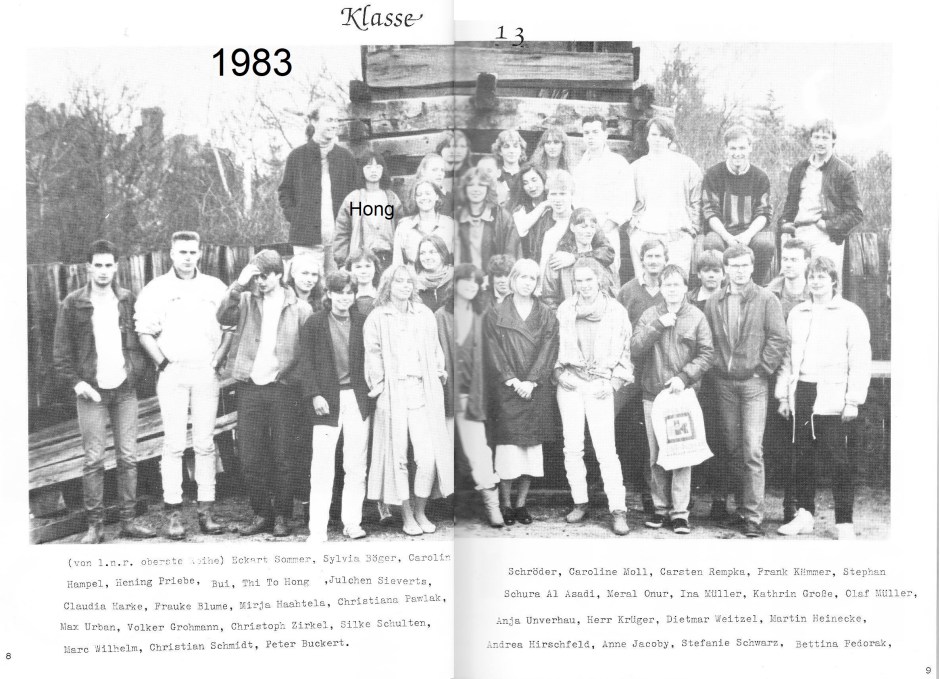 Rồi cũng đến ngày khai trường. Ở Việt Nam mẹ mới vào lớp 10 được mấy tháng thì bị đuổi học do đi vượt biên quá nhiều, mỗi lần như vậy lại nghỉ vài ngày, có khi cả tuần. Bà ngoại bị nhà trường kêu lên … kiểm điểm. Trong cơn nóng giận vì cãi nhau tay đôi với một bà cán bộ nào đó thuộc ban Giám hiệu, ngoại lôi mẹ xồng xộc ra khỏi phòng họp và tuyên bố „không cần đến trường nữa, mẹ cho đi học tư“. Thật là một … sai lầm lớn, vì học tư không có bạn để ganh đua nên … chán phèo. Trong hơn một năm học tư đó mẹ chả học hỏi được gì cả. Ngày ngày, mẹ đứng ở cổng trường, chờ đến giờ tan học để được đi lang thang với đám bạn cũ và nghe chúng nó kể những gì xảy ra trong lớp. Vì vậy, mẹ bị xếp học lớp 9, trường Realschule Rodenberg, cách nhà nội trú khoảng 3,5 km, phải đi xe buýt, mùa đông rất … lạnh khi đứng chờ ở trạm xe. Lớp 9R4 không có phòng học riêng (Wanderklasse), sau một giờ học lại phải đổi phòng. Bạn cùng lớp toàn mắt xanh mũi lõ, nhìn đứa nào cũng giống đứa nào, không phân biệt được, thầy cô phải kiếm mẹ để ngoắc kêu vào lớp. Nhưng mẹ nhanh chóng tìm ra phương pháp nhận dạng lớp của mình bằng cách chọn thằng cao nhất lớp, đẹp trai nhất lớp – sau này mẹ mới biết là nó cũng học … ngu nhất lớp luôn – tên Dieter, và ráng nhớ mặt nó để không bị lạc mỗi lần chuyển đổi phòng.