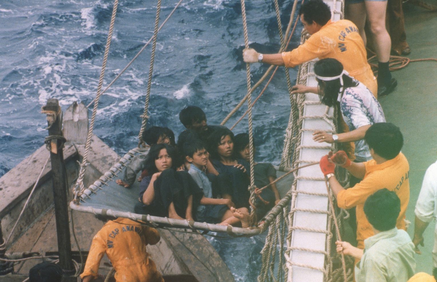 Boat People wurden 1980 von dem Frachtschiff Cap Anamur aufgenommen / Archivbild 80er